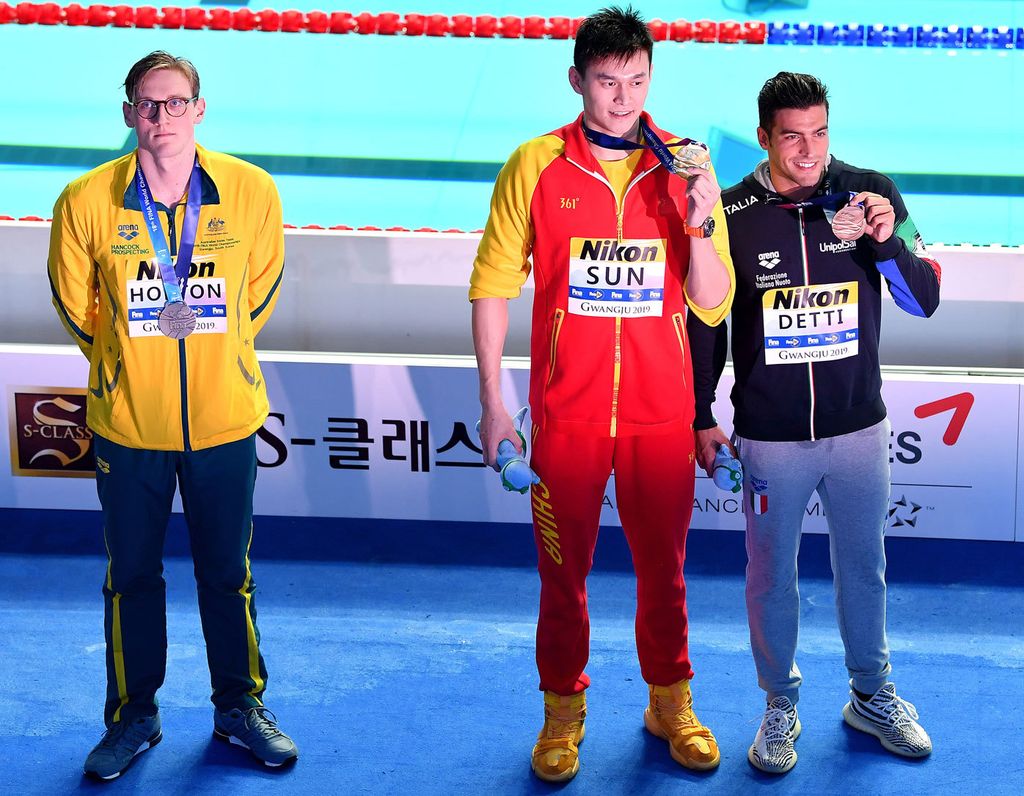 Italy's gabriele detti (left) won bronze Mack horton and chinese rival sun yang in 2019. Australia's mack horton received a standing ovation at the athletes' village after protesting against controversial chinese star sun yang's 400m freestyle win at the world swimming titles. Silver medalist mack horton of australia and gold medalist sun yang of china pose during the medal ceremony for men's 400m freestyle final on day one of the gwangju 2019 fina world championships. Sun is the first male swimmer in history to earn olympic and world championship gold medals at every freestyle distance from 200 to 1500 metres. Australian swimmer mack horton (centre) is an olympic champion after beating arch rival sun yang (right) in the 400m freestyle. Mack horton just called out sun yang: I am aware of the rumours that have been going around, but i try to just. Sun yang's cas doping ban ends controversial career where he made few friends in or out of the pool, clashing with rival mack horton. (aap) the latest controversy is over an attempt to take a blood and urine sample from sun in september 2018. Archive photo via mike lewis/ ola vista photography. Mack horton on swim rival sun yang: Mack horton (left) stood behind the podium rather than share it with sun yang (centre).(ap: